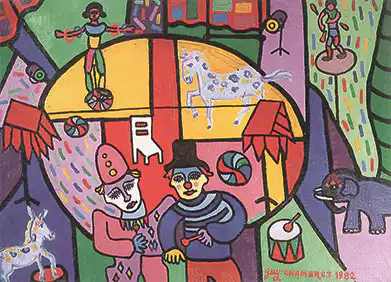 Peu de Dijonnais savaient qu’il était peintre. Un peintre naïf, au talent dérangeant à la manière des enfants et à la palette aux couleurs vives et audacieuses. Voilà qui lui valut de faire des expositions dans la région et d’acquérir une modeste renommée parvenue jusqu’à nos jours. Le cirque, qui fut très remarqué lors d’un salon Art et Sport, est emblématique de l’ensemble de son œuvre. Les éléments du spectacle, les personnages, le clown et le Pierrot, sont en quelque sorte enfermés – plus que mis en scène – dans un halo de lumière qui éclaire la piste. Sa technique picturale d’aplats, simple expression de la peinture présente dans les images d’Épinal, en fait sa « patte »…