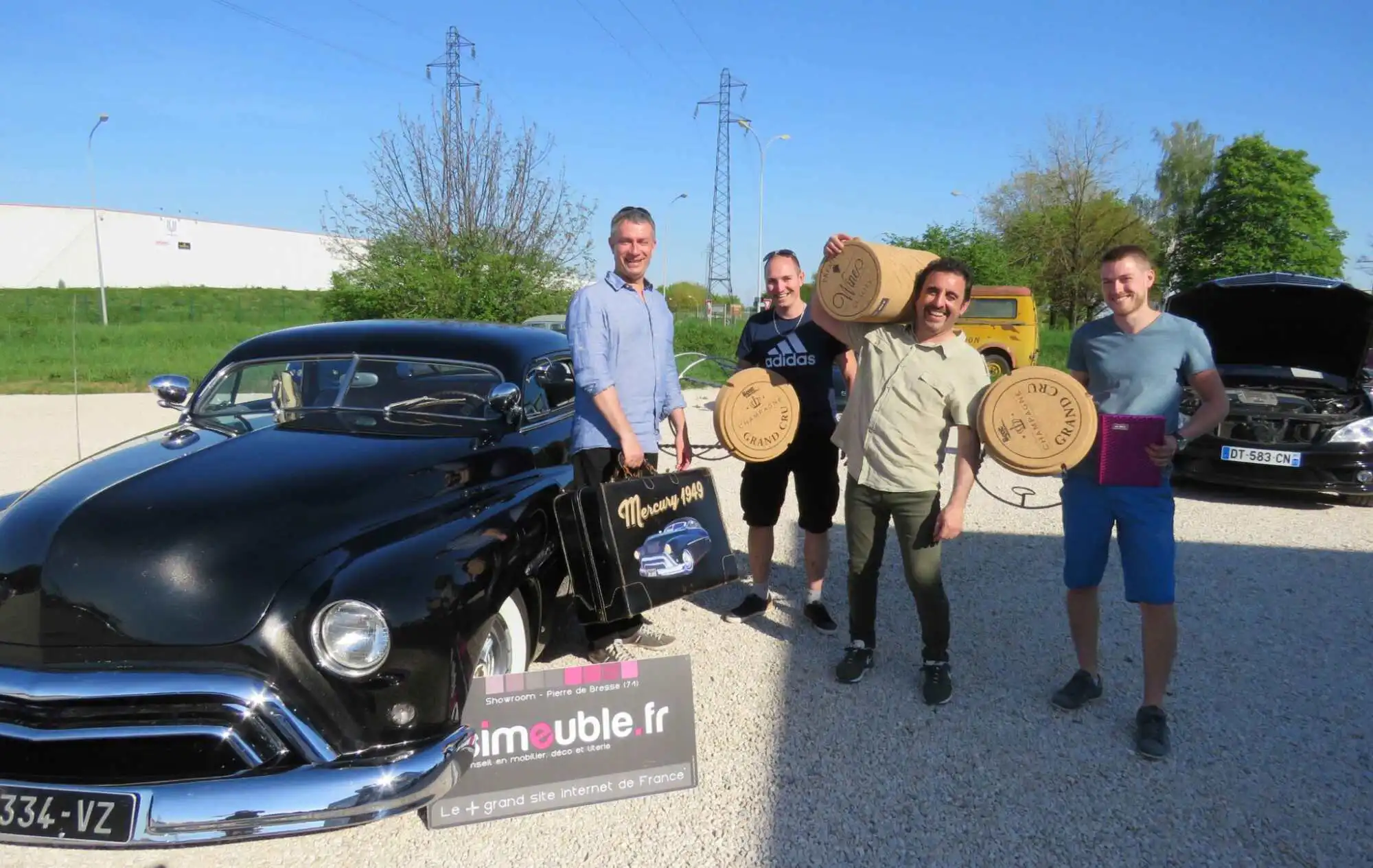 Pour l’occasion, les quatre compères ont présenté un petit bijou, en l’occurrence une Mercury de 1949, superbe voiture de collection repeinte par… DMA Carrosserie. (Photo J. Pierre)
