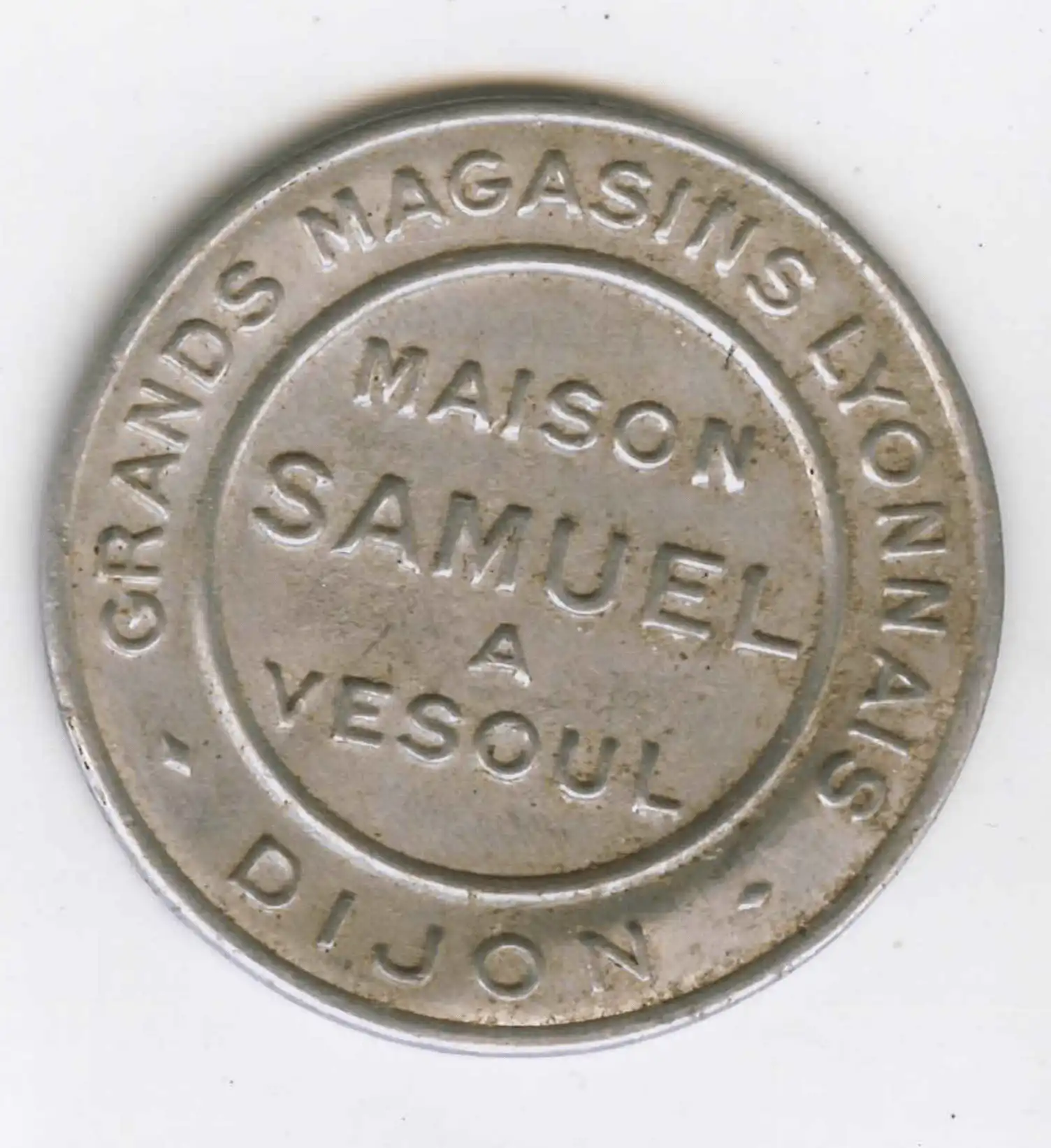 Marche arrière toute… A la Belle Epoque, vers 1900, ce sont les « Grands Magasins Lyonnais » qui avaient leur siège au fameux n°2. C’était pour les Dijonnaises d’alors un lieu d’achalandage fort prisé : on y trouvait aussi bien des chemisiers, des jupes, du tissu au mètre que des jaquettes ou des redingotes. Le conflit de 1914-18 crée des problèmes collatéraux aux commerçants : le bronze se met à manquer (et pour cause !) et on doit créer une monnaie de substitution à partir de timbres-poste serrés entre deux ronds, l’un en mica, le second en aluminium. Bien entendu, les « Grands Magasins Lyonnais » ont recours à ce palliatif. Ce qui permet à un autre établissement, « la Maison Samuel de Vesoul », d’y écouler une partie de ses marchandises, au point de faire de Dijon son deuxième point de vente.