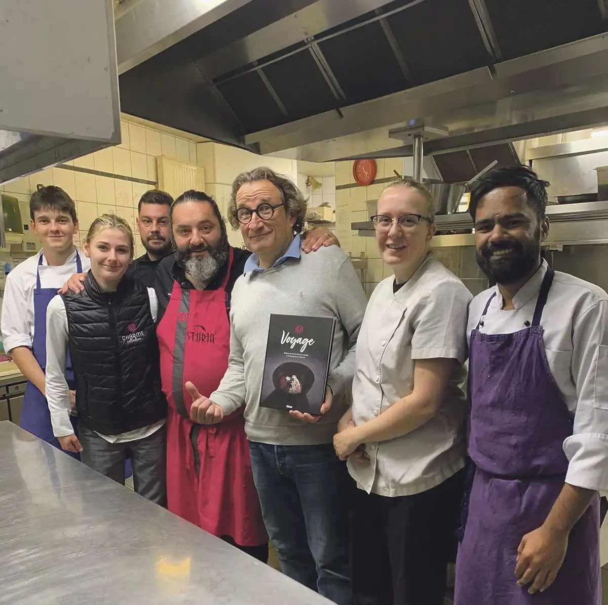 Des horizons gourmands, c’est en substance le menu proposé par Olivier Lévy, le directeur de l’emblématique librairie dijonnaise Gibert… A l’occasion de la publication du livre « Voyage » aux éditions Glénat, celui-ci a décidé d’organiser une séance de dédicaces pas comme les autres. Il faut dire que ce livre est une invitation aux voyages… gustatifs signée des chefs Nicolas Isnard et David Le Comte, qui font briller des étoiles plein les yeux à ceux qui fréquentent leurs établissements : l’Auberge de la Charme à Prenois, où 8 mois après leur installation en 2008 ils décrochèrent leur première étoile, le Bistrot des Halles, Kook’In Traiteur et, dernier en date, le Bistrot de Norges. Dans cette Charme Collection, ce duo excelle en saupoudrant ses délicieuses recettes par les saveurs et l’inventivité qu’ils ont découverts à travers le monde.