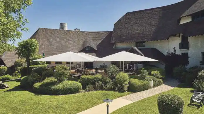 Tout commence en 1969 : Féla et Jean Flamand font construire un restaurant grill au look unique, une charpente de caractère et une grosse cheminée au cœur de la salle. Il est complété quelques années plus tard, en 1976, par un hôtel. Et l’histoire aurait pu s’arrêter là, puisque l’établissement a pris feu… Un an plus tard, en 1977 ! Un toit en chaume, un retour de flammes dans la cheminée, ça ne pardonne pas. Mais les Flamand persévèrent, reconstruisent et s’adaptent : le toit sera désormais fait de tuiles plates. Et l’aventure continue : l’établissement est transmis au fils Christian Flamand qui le gère seul pendant de nombreuses années, avant de travailler main dans la main avec le petit fils Jean-David Muszynski de 2007 à 2019.
