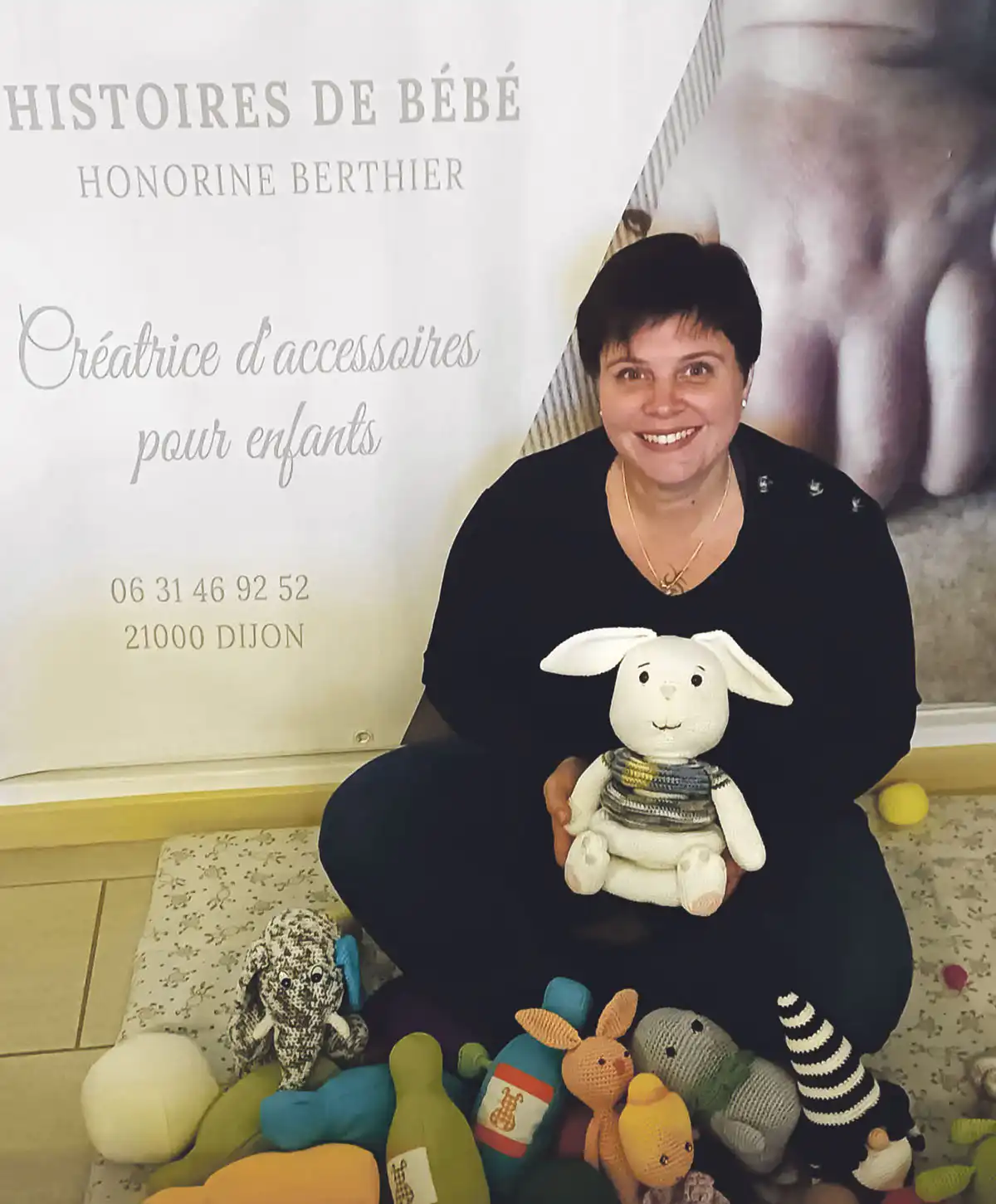 Ainsi vous pourrez découvrir, par exemple, l’excellence du travail d’Honorine Berthier qui n’a pas son pareil pour raconter des « Belles histoires de bébés », du nom de la marque dont elle est à l’origine. Celle-ci propose notamment de superbes articles réalisés au crochet ou en broderie pour les plus petits. Si vous souhaitez offrir un cadeau de naissance ou bien le futur « doudou » à votre enfant, ses créations ne vous laisseront pas indifférent. Enfin, nous devrions plutôt écrire qu’elles vous enchanteront… Honorine Berthier appartient au Collectif Les Art’iZans qui a vu le jour il y a 4 ans et regroupe différents créateurs locaux.